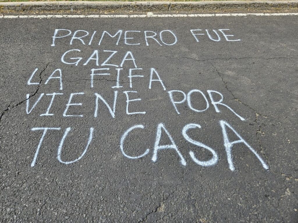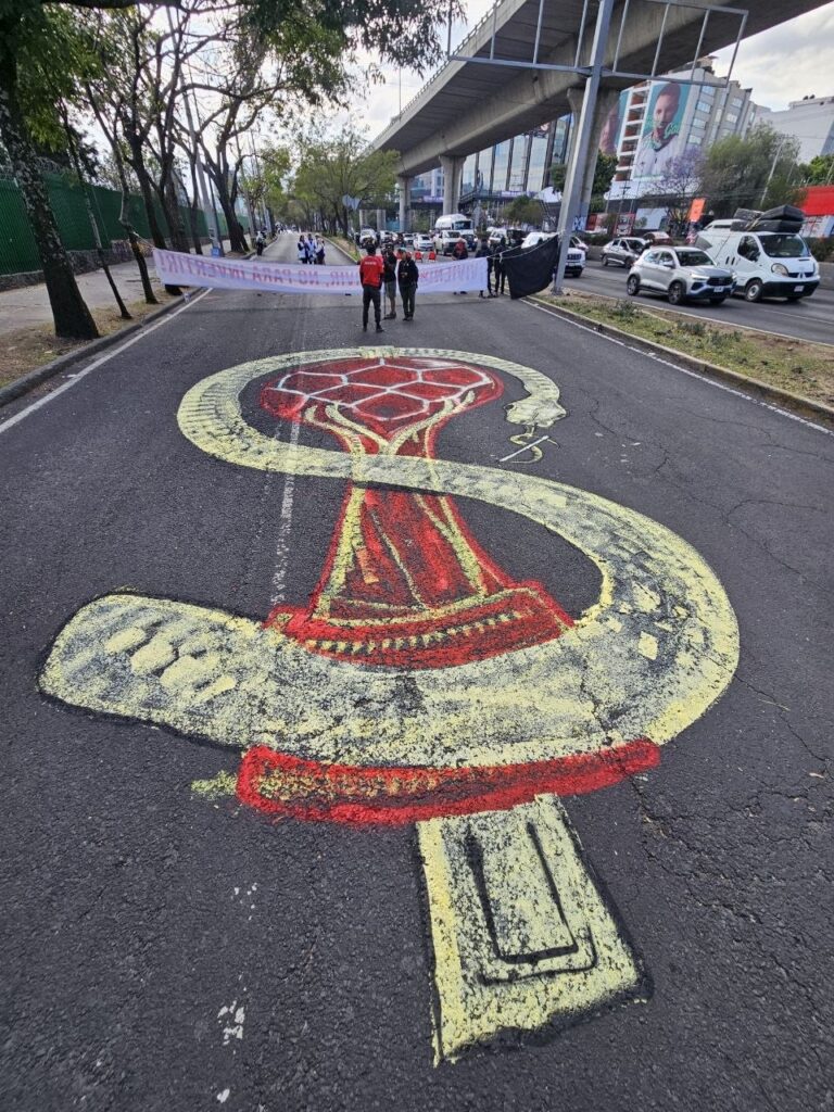 MÉXICO: Sigue la lucha contra el Mundial de Futbol. Estudiantes de la ENAH Okupan la calle entre las luchas de resistencia que estuvieron:Las madres buscadoras, grupos pro palestina, animalistas entre otros.